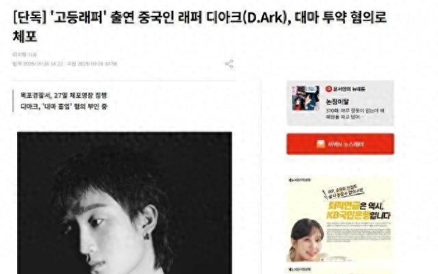 10月28号,韩国那边传来个让人咋舌的消息——中国籍说唱歌手D.Ark(迪雅克),因为涉嫌分销和吸大麻被抓了!这事直接冲上热搜第一,不少以前喜欢他的人都懵了。